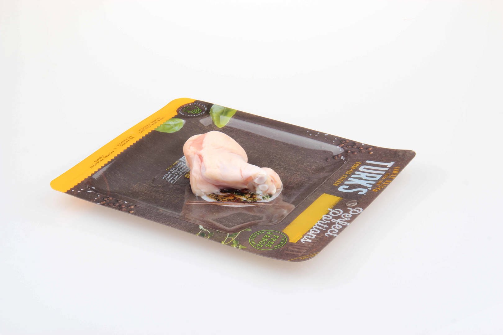贴体可牢牢固定鸡腿、鸡胸,保持形状不走位。